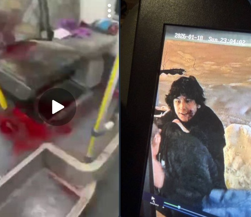 В сети уже появились видео с камер наблюдения, на которых предположительно таджик хладнокровно и со спины бьёт подростка ножом. А также видео залитого кровью автобуса и фото предполагаемого убийцы.